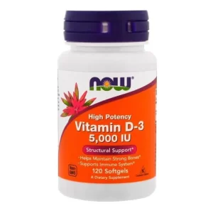 Vitamina D3, 5000IU, 120 cápsulas, Now